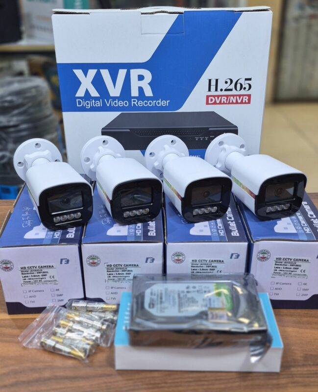 پک کامل ۴ دوربین مداربسته دید در شب رنگی با هارد ۵۰۰ گیگ